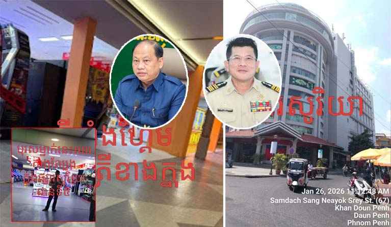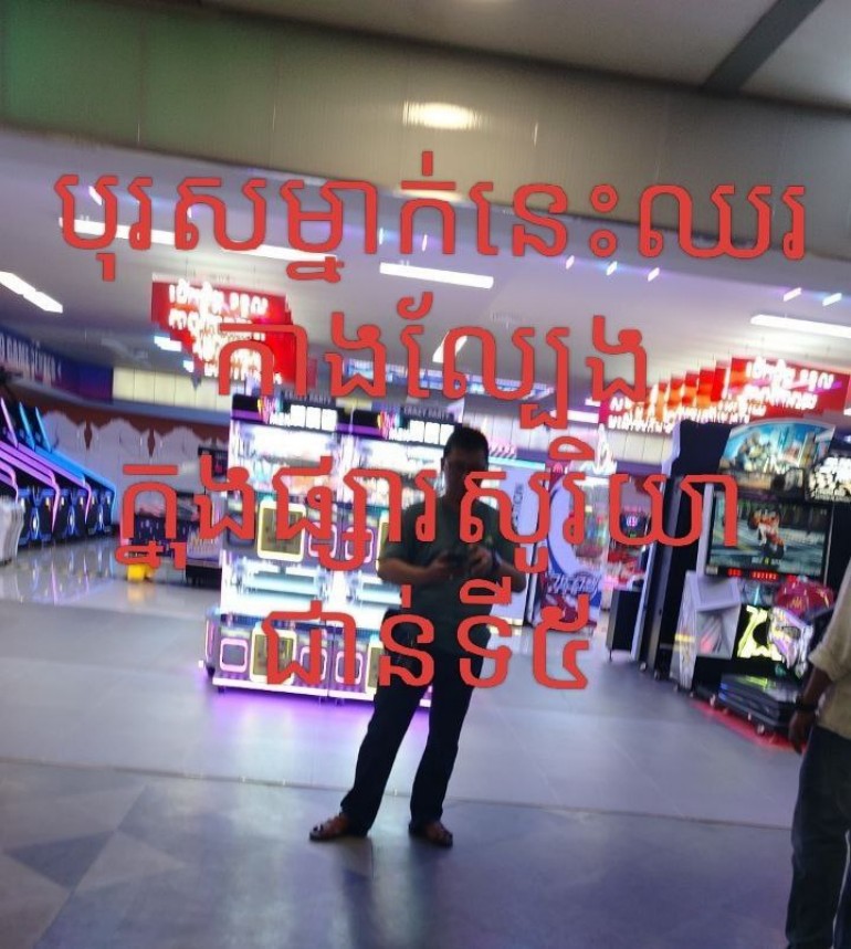 រាជធានីភ្នំពេញ ÷ សូមធ្វើសេចក្តីរាយការណ៍ជូន អាជ្ញាធរពាក់ព័ន្ធ ក្នុងខណ្ឌដូនពេញ ជាពិសេស លោក ជា ខេមា អភិបាលខណ្ឌដូនពេញ ! សូមចាត់មន្ត្រីជំនាញ ពាក់ព័ន្ធ ចុះត្រួតពិនិត្យ ទីតាំងល្បែងកម្សាន្ត មួយកន្លែង ឋិតនៅលើផ្សារទំនើបសូរិយា (ជាន់ទី៥) កំពុងពង្វក់អារម្មណ៍ សិស្សសាលាគេចម៉ោងរៀន !និងបណ្តាយុវជននិង យុវចាស់ប្រុស-ស្រី មួយចំនួន លេងល្បែងស៊ីសង ដោយក្តីអនុគ្រោះផងទាន !! រក្សាបទបព្ជាភូមិ/ សង្កាត់មានសុវត្ថិភាព ដែលថ្នាក់ដឹកនាំ ដាក់អោយមន្ត្រីថ្នាក់ក្រោមអនុវត្តតាម..!។
